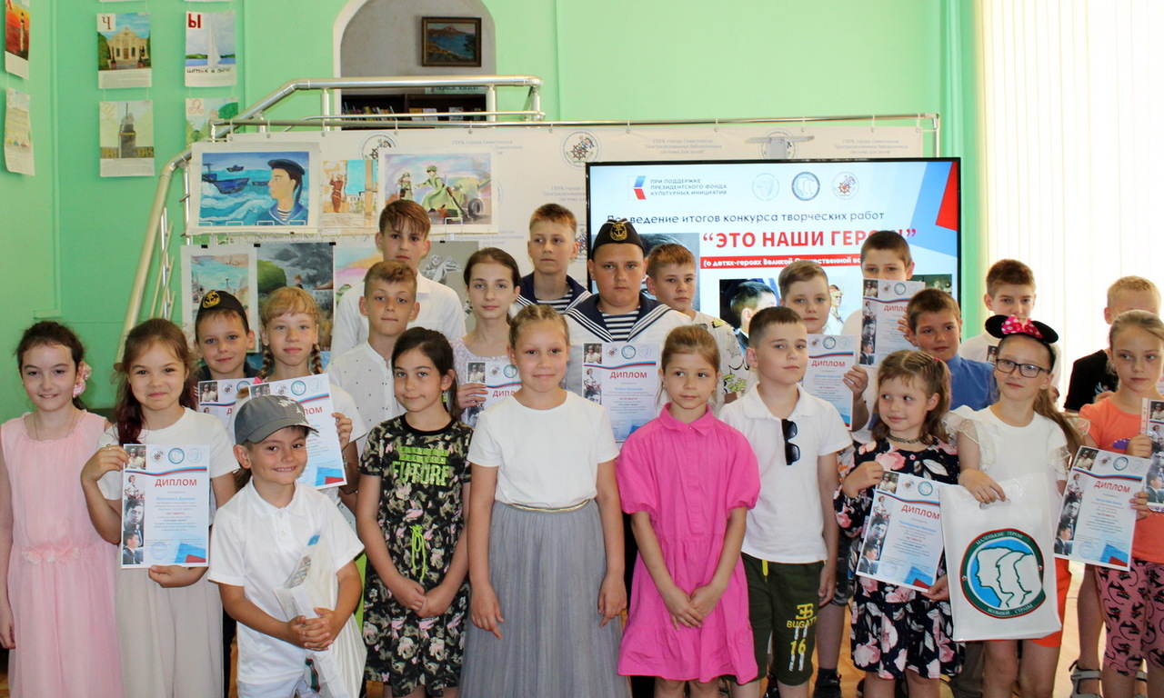22 июня в Центральной городской детской библиотеке им. А. П. Гайдара состоялось награждение победителей второго Конкурса творческих работ «Это наши герои!», который проходил в рамках гражданско-патриотического проекта «Маленькие герои большой страны» при поддержке Президентского фонда культурных инициатив. Проект подготовлен Централизованной библиотечной системой для детей, РОО «Севастопольский городской Совет Женщин» и поддержан Департаментом культуры города Севастополя.
