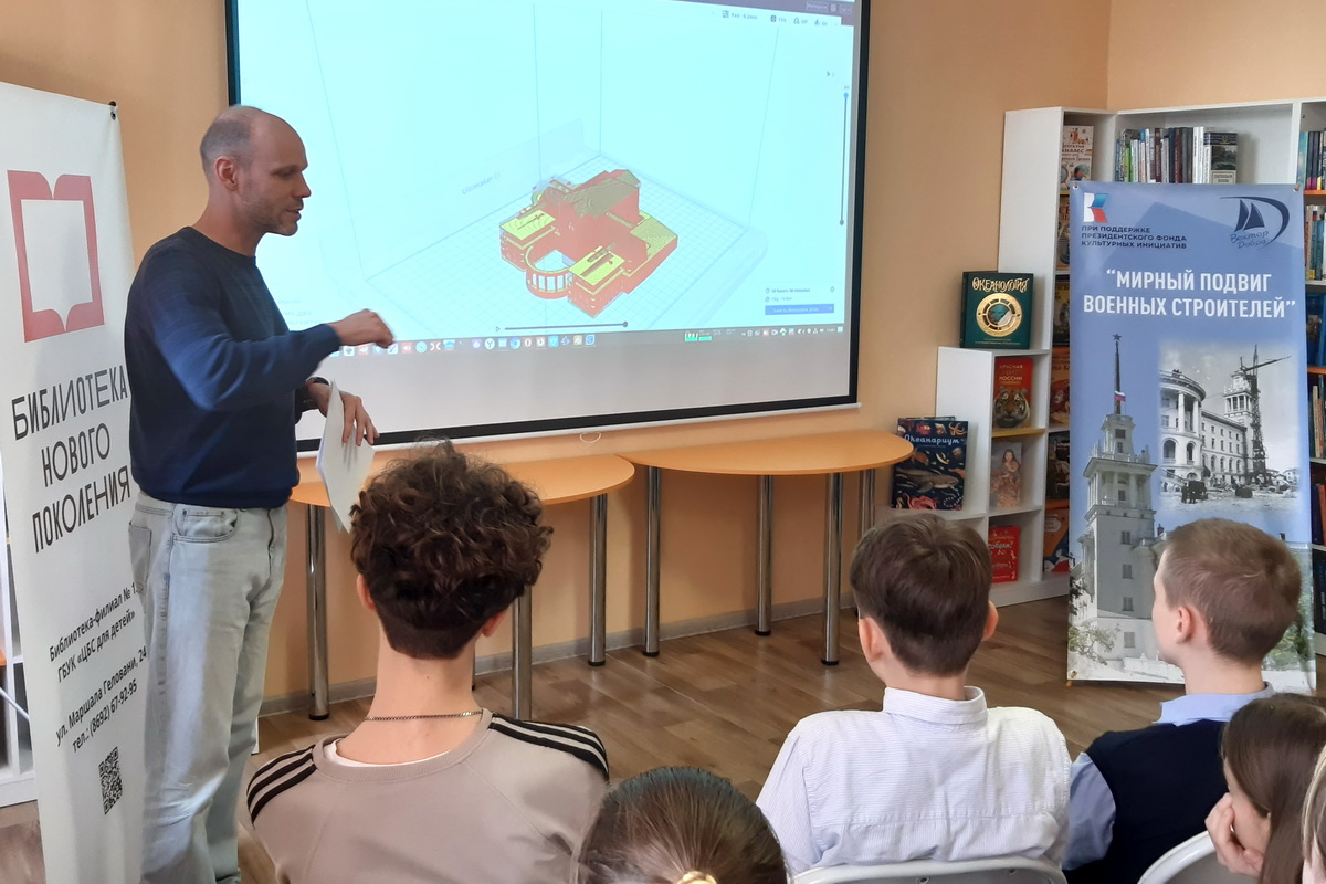 С приветственным словом к присутствующим обратилась Марина Васильевна Буцких, заместитель директора ГБУК «ЦБС для детей». Она отметила, что для участников проекта на базе модельной детской библиотеки-филиала № 13 пройдут мастер-классы по 3D-моделированию, просветительские мероприятия по истории восстановления самых знаковых учреждений города. Ещё ребят ждут экскурсии в «Музей военно-строительного комплекса Черноморского флота». Дети примут участие в творческом конкурсе «Облик города-героя глазами детей», где они представят созданные ими модели зданий города. Из изготовленных 3D-моделей будет составлена выставка-инсталляция «Облик города-героя».
