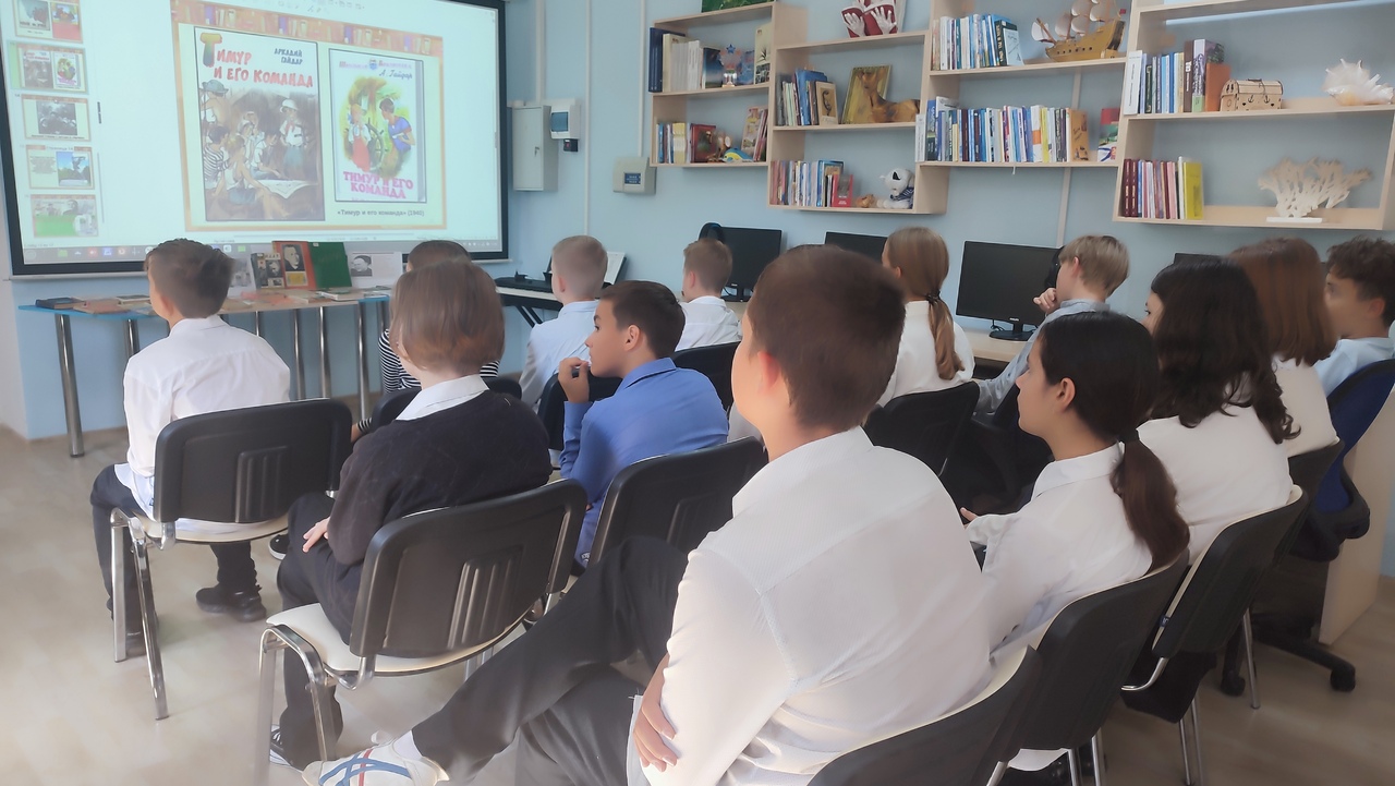 узнали о том, как появился псевдоним писателя, и что он означает, познакомились с егосамыми известными произведениями: «Тимур и его команда», «Чук и Гек», «Голубая чашка»,«Горячий камень». На примере этих книг вели разговор о доброте и милосердии,
