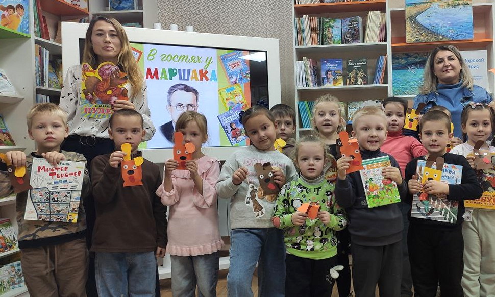 В модельной библиотеке-филиале № 10 ребята отправились в увлекательное путешествие на поезде. Во время пути поезд останавливался на станциях, где пассажиров ждали интересные задания по замечательным книгам С.Я. Маршака. Дети с радостью находили ответы на загадки, которые для них придумал Маршак. Вспоминали название сказки или стихотворения по зачитанному отрывку. Море эмоций и восторг вызвала у них станция «Зоопарк». Каждый смог попробовать себя в роли одного из животных, о которых было написано в книге «Детки в клетке». На станции «Творческая мастерская» дети своими руками изготовили забавного щенка из цветной бумаги.