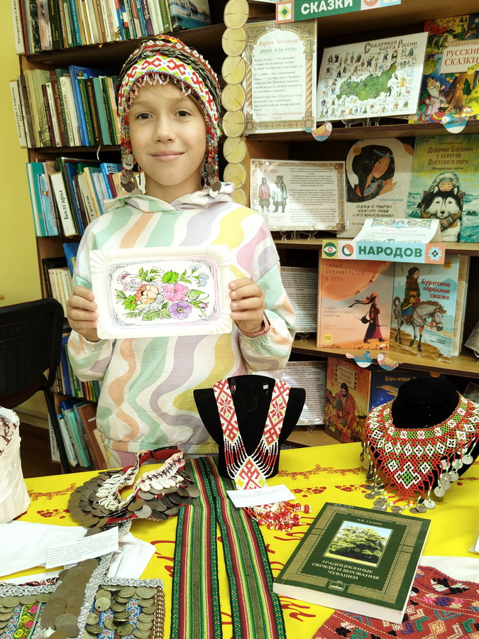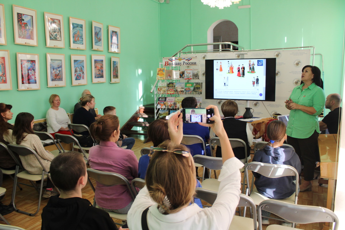 В модельной библиотеке-филиале № 8 гости познакомились с историей и культурой народов, населяющих нашу страну, поиграли в фольклорные игры, отправились в увлекательное литературное путешествие по сказкам народов России. Познавательная игра «Веселые художники» с применением интерактивной панели «Муза» помогла ребятам проявить свое творчество.