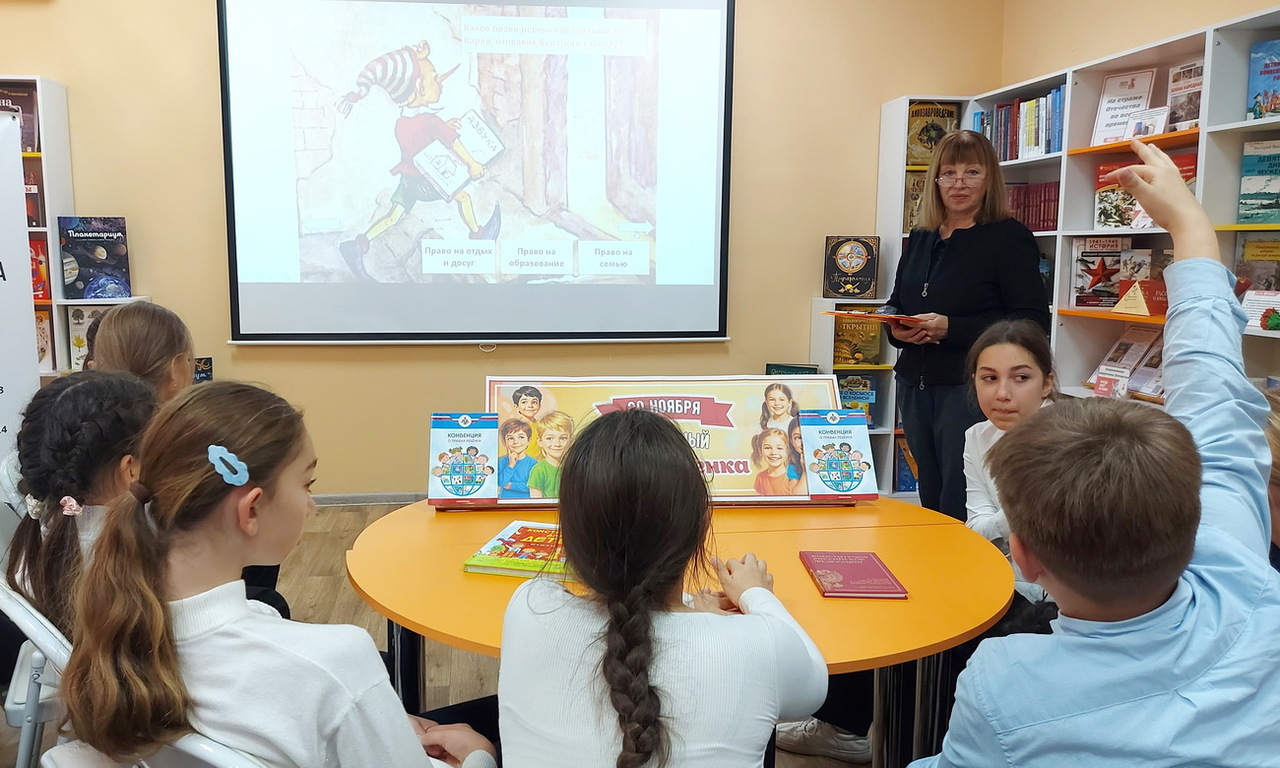 Читатели отдела «Мир детства» ЦГДБ им. А. П. Гайдара узнали о Конвенции о правах ребёнка: что это за документ, когда он был принят, какие права он гарантирует и почему важно знать их с раннего возраста. Ребята подбирали рифмы к стихам о правах, распределяли по группам права и обязанности. Задания помогли ребятам лучше понять, что права и обязанности всегда тесно связаны между собой. Завершилась встреча литературной викториной, в которой дети определяли, какие права сказочных героев были нарушены и как можно было бы им помочь.