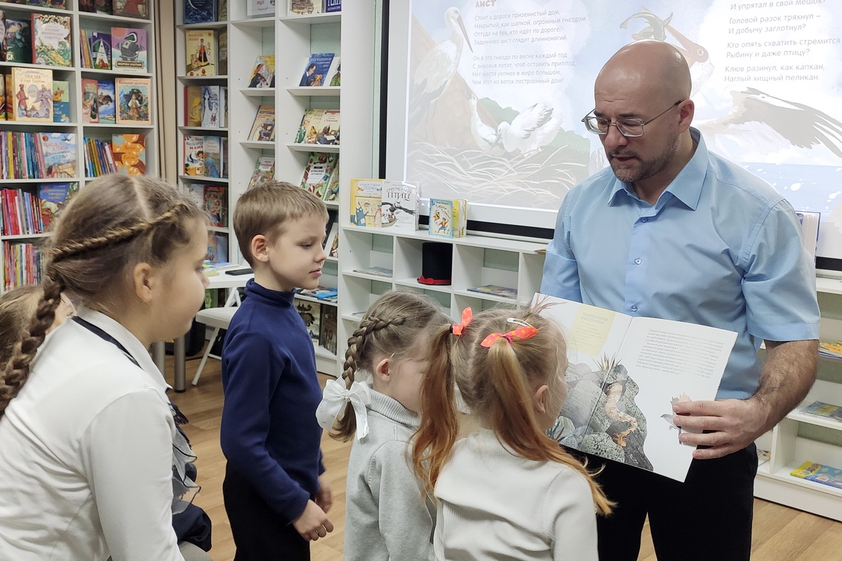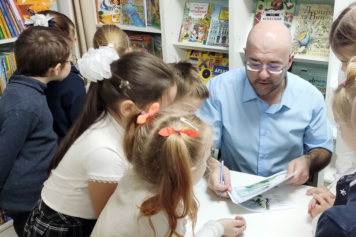 В живом общении Михаил Георгиевич познакомил ребят с серией научно-познавательных книг «Великолепная десятка», а также поделился интересными фактами об удивительных животных. Рассказал о только что изданных книгах из серии «Малышки-эрудишки» – «Бабочки» и «Птицы».