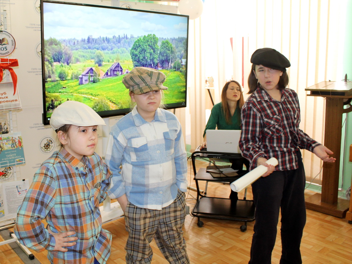 В зале собрались и дети, и взрослые. Читатели-артисты показали зрителям театрализованное представление «Тимур и его команда». Эту книгу Аркадия Гайдара знают и любят в каждой семье. Вместе с ее героями зрители перенеслись в подмосковный дачный поселок и стали участниками приключенческой истории о дружбе, взаимовыручке, первой любви и бескорыстной помощи.