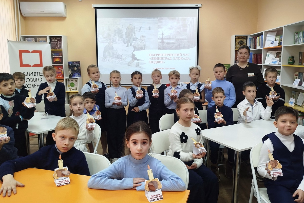 В модельной библиотеке-филиале № 13 состоялись час памяти «Был город фронт, была блокада», час памяти «Был город фронт, была блокада» и патриотический час «Ленинград. Блокада. Подвиг». Библиотекари рассказали о героическом подвиге ленинградцев. Ребята узнали о «Дороге жизни», о 125 граммах хлеба, из чего пекли и почему он был таким драгоценным. Дети читали стихи О. Берггольц, В. Инбер, А. Прокофьева, отвечали на вопросы викторины, познакомились с выставкой инсталляцией «Блокада Ленинграда». В честь мужества, стойкости с ребятами создали «Свечу памяти», которая стала символом благодарности за подвиг народа.