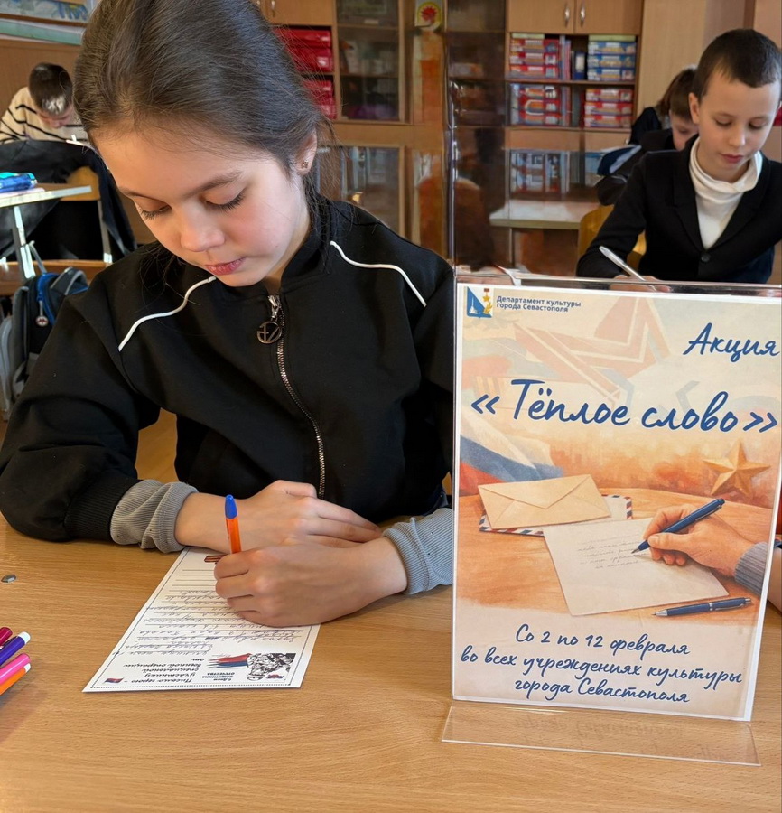 Читатели Централизованной библиотечной системы для детей присоединились к городской акции «Теплое слово», посвященной Дню защитника Отечества. С 2 по 12 февраля все учреждения культуры Севастополя стали площадками для выражения искренней признательности нашим военнослужащим.