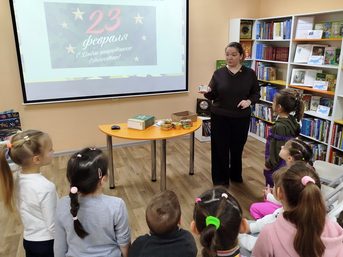 В модельной детской библиотеке-филиале № 8 прошла беседа «Русский солдат умом и силою богат». Библиотекарь рассказала о героях, подвиги которых народ помнит на протяжении веков и десятилетий. Дети больше узнали о том, что такое армия, для чего она нужна, какие рода войск существуют, какими качествами должен обладать каждый солдат. Юные книголюбы прочитали по ролям рассказ Л. Пантелеева «Честное слово» и поделились впечатлениями о главном герое как о человеке, который в будущем может стать отличным солдатом.