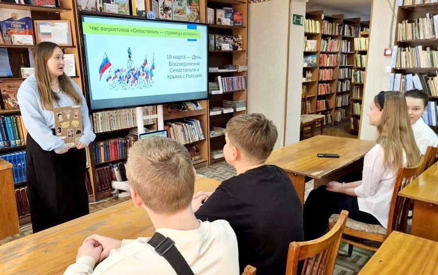 В «Библиотеке Дружбы народов»-филиале № 14 прошли часы истории под названием «Севастополь – частица великой России». Ребята познакомились с удивительной историей Крыма, узнали о его богатом культурном наследии. Школьники обсудили важные исторические события, которые связаны с полуостровом, и поговорили о значении референдума 2014 года, когда Крым и Севастополь вернулись в состав Российской Федерации. Особое внимание было уделено тому, как преобразился Крым и Севастополь за 12 лет.