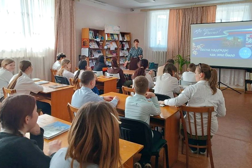 Сотрудники модельной библиотеки-филиала № 13 провели для читателей патриотический час «Воссоединение Крыма с Россией». Школьники познакомились с важными страницами новейшей истории, узнали о значении Крыма и Севастополя для нашей страны, поговорили о единстве народа, любви к Родине и ответственности за её будущее.