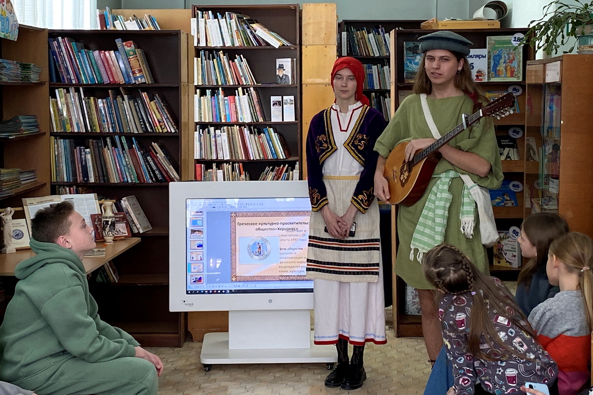 В отделе «Мир детства» Центральной городской детской библиотеки им. А. П. Гайдара состоялась встреча с представителями Севастопольского греческого культурно-просветительского общества «Херсонес». Гости рассказали ребятам об истории основания Херсонеса Таврического, познакомили с народами, населявшими крымскую землю, их традициями и образом жизни. Участники узнали об особенностях греческой культуры, о том, как выглядели дома в древности, какие материалы использовались при их строительстве и каким был быт жителей Херсонеса.