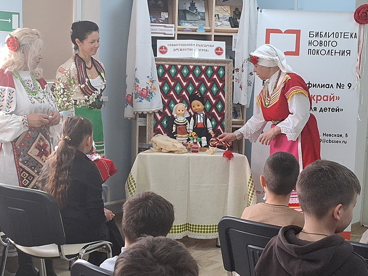 В модельной библиотеке-филиале No 9 состоялась встреча с представителями Болгарского национально-культурного общества города Севастополя «Игрев». Ребята и взрослые имели возможность узнать о болгарских обычаях и праздниках, их значении и традициях. В ходе встречи дети также попробовали прочитать стихи на болгарском языке. Это было очень увлекательно и необычно, так как многие заметили, что болгарский язык имеет некоторые сходства с русским. Гости провели мастер-класс, на котором все желающие смогли своими руками изготовить традиционный весенний болгарский амулет – «Мартеничка» – это символ прихода весны, здоровья и удачи.