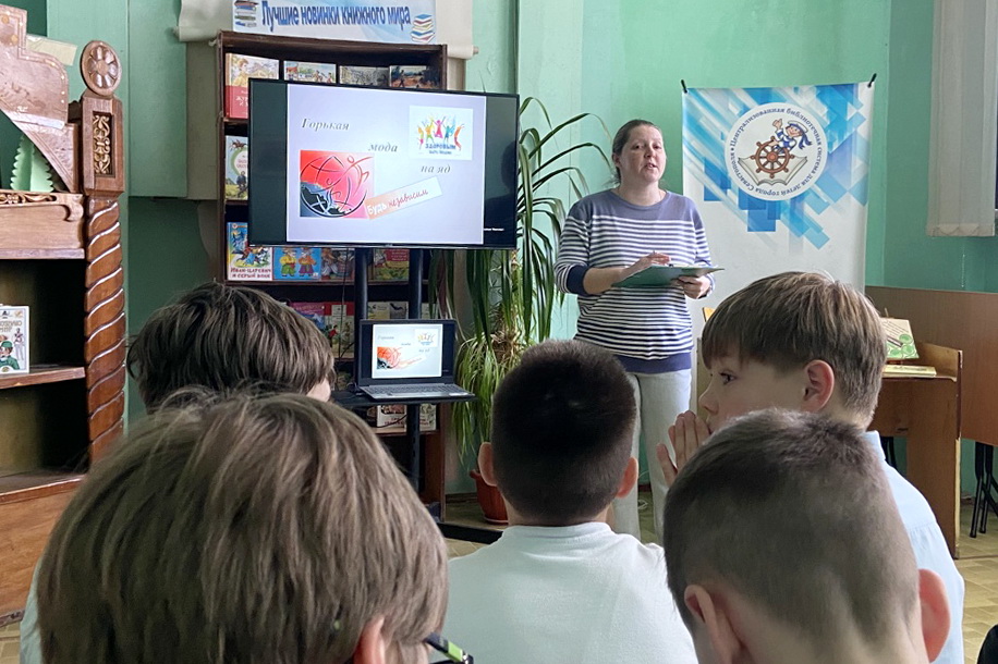 В «Библиотеке Дружбы народов»-филиале №14 на литературной игре «Азбука здоровья» дошкольники и младшие школьники познакомились с героями одноименной книги Натальи Чуб и узнали, какие важные советы им дает доктор Неболейкин, прочитали стихи Димки Белкина и кричалки Динки Малинкиной. А ещё ребятам рассказали, как делать утреннюю зарядку, выбирать полезные для здоровья продукты, соблюдать правила гигиены и режим дня. Со старшеклассниками состоялась беседа о вреде курения. Подростки узнали, как табачный дым, а также пары вейпов и кальянов влияют на организм человека, какие болезни вызывает эта вредная привычка.