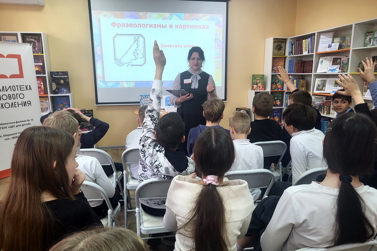 В модельной детской библиотеке-филиале №13 «Книжный мир» для читателей состоялся час словесности «Родной язык – как ты прекрасен». Ребята узнали о том, что Александр Сергеевич Пушкин сыграл ключевую роль в формировании литературного русского языка. Его произведения стали эталоном грамотности и стиля. Читая Пушкина, дети знакомятся с классическими образцами русской литературы и учатся правильному использованию языка. Далее читатели приняли участие в лингвистической игре, где выполняли задания, связанные со знаниями русского языка, решали лингвистические головоломки, подбирали синонимы, разбирали фразеологизмы.