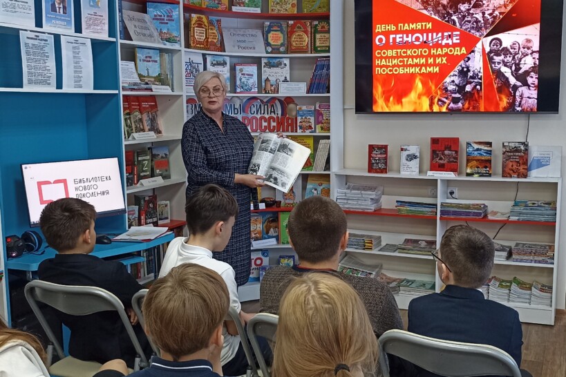 В модельной детской библиотеке-филиале № 9 прошёл час истории «Без срока давности: память о геноциде». Ребята погрузились в одну из самых трагических страниц истории нашей страны и узнали, что означает понятие «геноцид» и какие преступления против мирного населения совершались в военные годы, о судьбах детей военного времени – ровесников наших читателей, которые стали жертвами концлагерей и карательных операций. В ходе встречи школьники познакомились с архивными свидетельствами, услышали реальные истории тех лет и обсудили, почему так важно сохранять историческую память. Особое место в мероприятии заняла минута молчания – в знак уважения и скорби по всем жертвам геноцида.