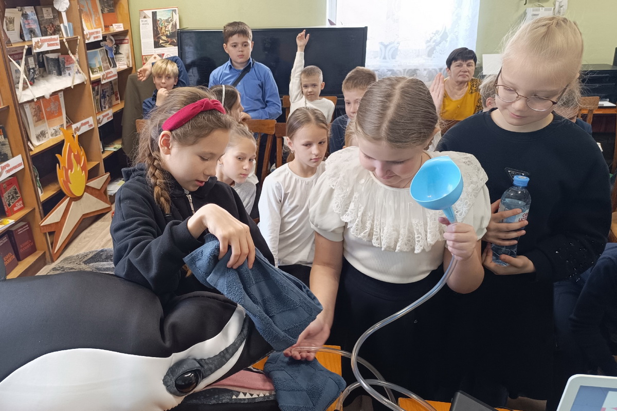 Массу положительных эмоций вызвало у юных читателей возможность самостоятельно восполнить количество недостающей жидкости в организме дельфина Севы.