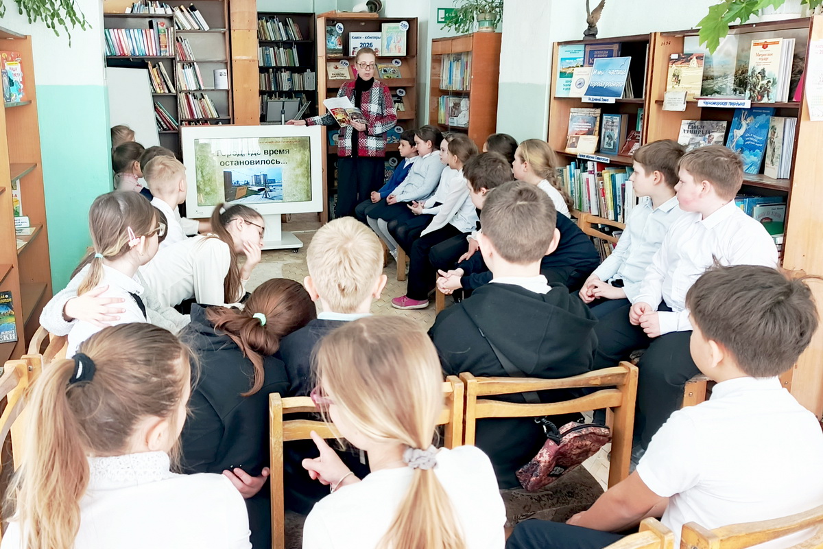 В отделе «Мир детства» Центральной городской детской библиотеки им. А. П. Гайдара прошёл час памяти «Город, где время остановилось». Ребята-третьеклассники узнали о том, как проходила электрификация в нашей стране и появились первые АЭС. Большое впечатление произвели на них подвиги ликвидаторов аварии – лётчиков, пожарных и водолазов. Узнали ребята и о том, как живёт Припять и её окрестности в наши дни.