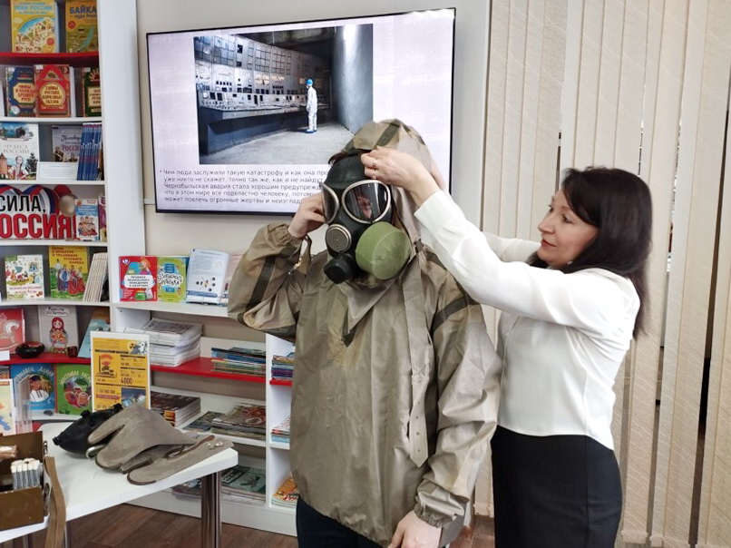 В модельной библиотеке-филиале № 8 прошли часы памяти «Чернобыль: как это было». Библиотекарь рассказала ребятам, чем обусловлено было строительство Чернобыльской атомной электростанции, а затем участники проследили аварию на Чернобыльской АЭС с того момента, когда всё только начиналось. Школьники услышали, как проходила эвакуация мирных жителей, какое количество человек и техники было задействовано для ликвидации аварии, на какие территории и страны распространилась радиация. Ребята с большим интересом разглядывали прибор ВПХР, который сейчас используют военные для измерений загрязнения окружающей среды. Для ликвидации последствий аварии были задействованы более 600 тысяч человек. Из средств защиты у пожарных были только брезентовая роба, рукавицы и противогазы. Все эти средства защиты были наглядно продемонстрированы ребятам. Некоторые желающие даже смогли примерить на себя и ощутить, как тяжело было работать в таком костюме в длительных условиях.